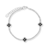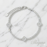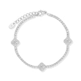 צמיד נשי ויוקרתי, עשוי **כסף 925 אמיתי וחתום**, עם עיצוב נקי ומדויק המשובץ אבנים נוצצות לכל האורך. הצמיד משולב בשלושה אלמנטים פרחוניים עדינים במרכז ליצירת מראה רומנטי ומלא ברק 💎