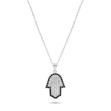 שרשרת אלגנטית יוניסקס עם תליון חמסה בעיצוב קלאסי ומודרני, משובץ באבני זירקון מבריקות שמוסיפות ברק יוקרתי.