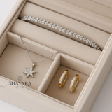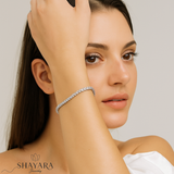 צמיד טניס אלגנטי בעל שורת אבני זירקון מנצנצת בחיתוך עגול, ובמרכזו אלמנט לב עדין שמוסיף נגיעה רומנטית. עשוי מכסף סטרלינג 925 בציפוי רודיום לעמידות גבוהה וברק מתמשך – מתנה עם משמעות, ליום־יום ולאירוע.