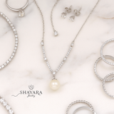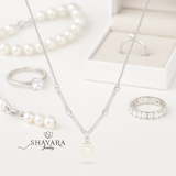 ✨ שרשרת כסף 925 בעיצוב V עם שיבוץ זרקונים ופנינה משתלשלת ✨