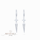 עגילים מעוצבים ועדינים שמביאים נגיעה של יוקרה מודרנית וסגנון אלגנטי. העיצוב התלוי כולל חישוק כסף 925 איכותי, משובץ בזירקונים בוהקים ומסתיים בתליון שפיץ ייחודי ומחמיא. השילוב בין הקווים הנקיים לבין הברק המרשים הופך את העגילים לבחירה מושלמת לכל מראה – מהקז'ואל ועד לאירועים חגיגיים.