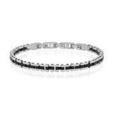 צמיד יוקרתי בעיצוב עכשווי, המשלב חוליות בצבע שחור מטאלי עם נגיעות כסף מבריקות. במרכזו אלמנט עדין המשובץ באבנים שחורות קטנות, המוסיף טאץ’ מתוחכם ומלא עוצמה. הצמיד משדר סגנון גברי, אלגנטי ונוכחות בולטת – הבחירה המושלמת ליום-יום וגם לאירועים מיוחדים.