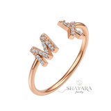 טבעת אותיות SHAYARA – בהתאמה אישית עם שיבוץ אבני מוסנייט