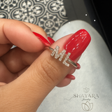 טבעת פתוחה בעיצוב גיאומטרי עדין ומודרני, עשויה כסף סטרלינג 925 בציפוי זהב יוקרתי. כל טבעת נוצרת במיוחד עבורך – עם אפשרות לבחור אותיות משובצות באבני מוסנייט נוצצות. תכשיט בעבודת יד שמשלב משמעות אישית, יוקרה ונשיות מתוחכמת.