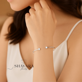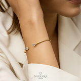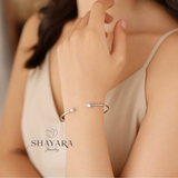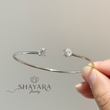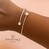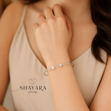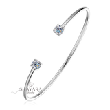 צמיד קשיח בעיצוב גמיש ומתכוונן (מתאים בנוחות לכל פרק יד), משובץ אבני Moissanite זוהרות בצד הצמיד – ברק עוצר נשימה. מיוצר מכסף סטרלינג 925 בציפוי 14K (זהב לבן / זהב צהוב) לגימור יוקרתי ועמיד.