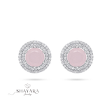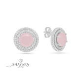 ✨ עגילי כסף בעיצוב עגול עם אבן ורודה וזירקונים כפולים